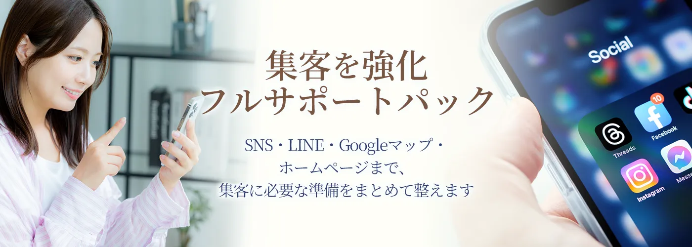 このプランはホームページ・SNS・LINE・Googleマップをまとめて整える内容となっております。